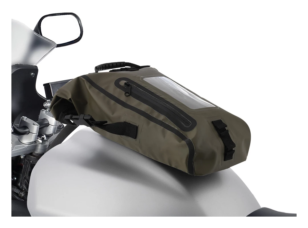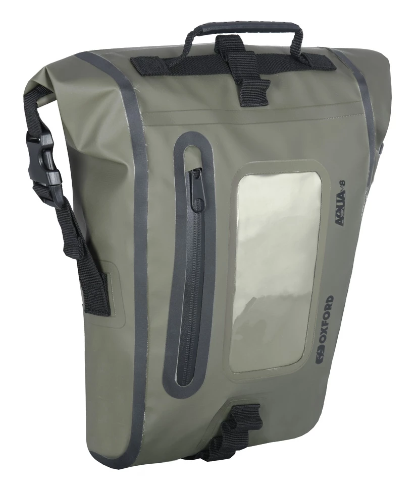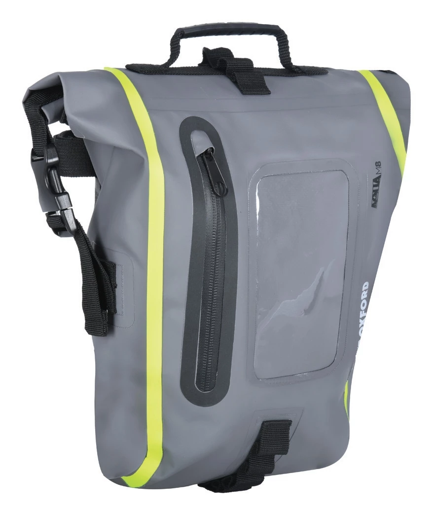 Oxford Aqua M8 Tank Bag is a mid-sized roll-top drybag sized perfectly for metal gas tanks of most sport and sport touring motorcycles.