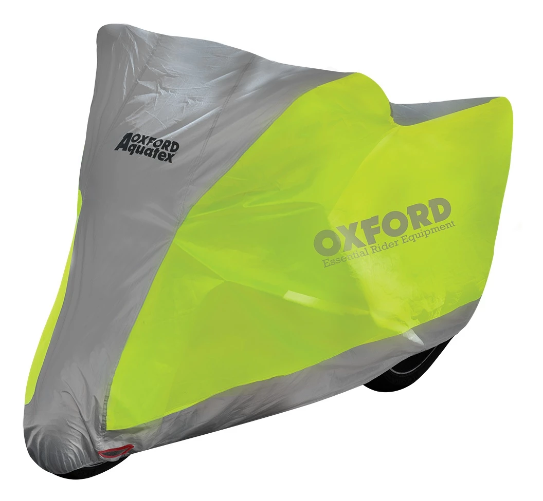 The Oxford Aquatex Fluorescent Cover offers essential protection against rain and dust. Its fluorescent high-visibility yellow color vastly improves visibility so no one backs into your bike.