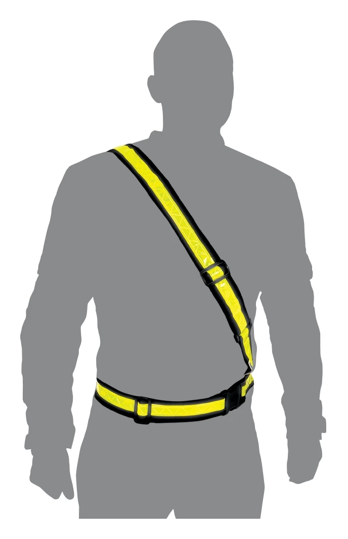 The reflective material is mounted on a strong, hardwearing, yet flexible webbing material. Fully adjustable through extra tough buckle.