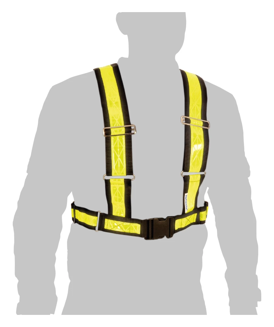 The reflective material is mounted on a strong, hardwearing, yet flexible webbing material Full adjustable through extra tough buckle.