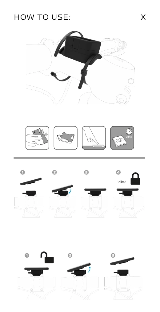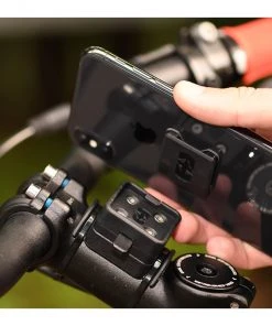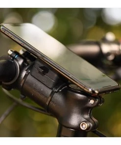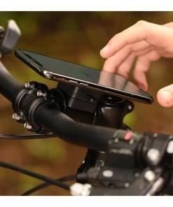 The Oxford CLIQR system consists of an adapter that adheres to the back of your phone and its corresponding base that ensures a rock-solid connection. Your phone securely clicks in, then clicks out. This mount is designed to hold most smartphones in a landscape or vertical orientation on the handlebar stem of your bicycle. Motorcycle mounts are available separately. This kit allows you to use the same phone mount system on your bicycle that you use on your motorcycle.