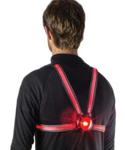 - 4 red fiber optic strap lights with 3 modes and highly visible reflective trim