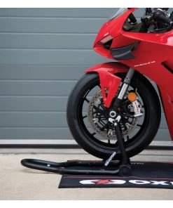 The Oxford Front Paddocks Stand lifts the front of your bike for ease of maintenance or storage.