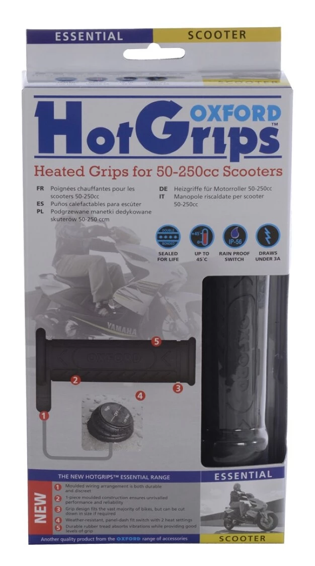 With five heat settings, Oxford Heaterz Scooter Grips will get you through the dead of winter or a chilly morning commute with ease. Oxford uses a combination of cold temperature rated silicone cables, waterproof connections and a rainproof heat controller to meet the demands of going the distance. Installation is straightforward and simplified. You only need to connect to the battery. Oxford’s Intelligent Heat Controller is engineered to sense a running bike. Should your cumulative saddle time wear through the grips, replacements are readily available.Â