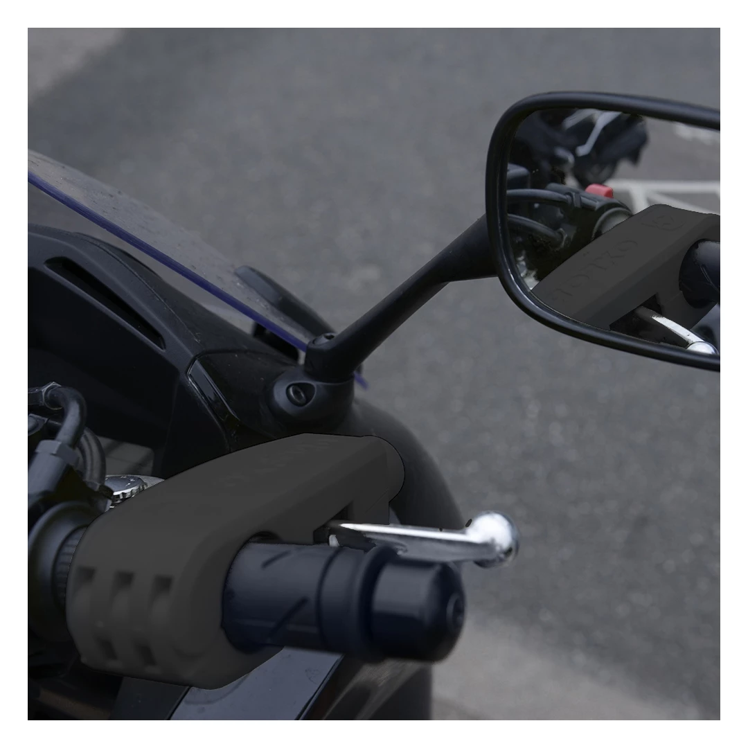 The LeverLock from Oxford is a compact, portable security solution that works across a wide variety of motorcycles. It works by squeezing the front brake lever along any one of the 3 available internal channels, so that without removing the device your bike will not move.