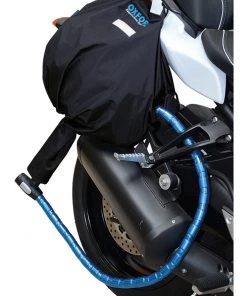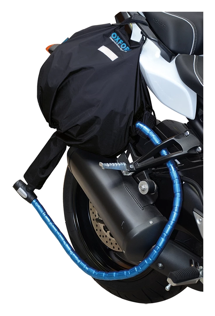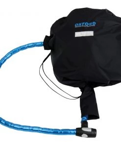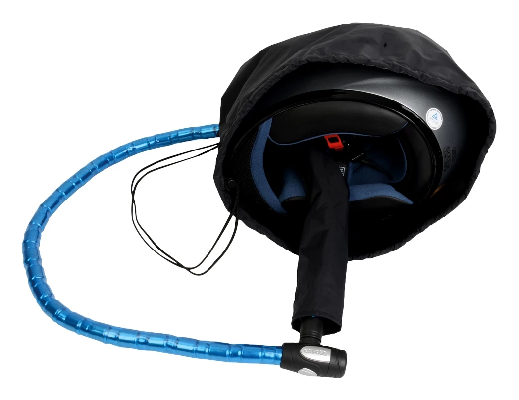 This unique product finally answers the question: how to leave your helmet with your bike without it getting wet, damaged or stolen? The helmets remains completely protected from the elements at all times. However, the chain and lock (not provided!) is threaded down a waterproof tube which runs through the shield aperture and out of the bottom of the helmet (see image) so that you can lock it to the bike. The easiest lock to use is an armored cable lock (such as an Oxford Tripwire), but you could equally use a chain lock or a regular cable lock.