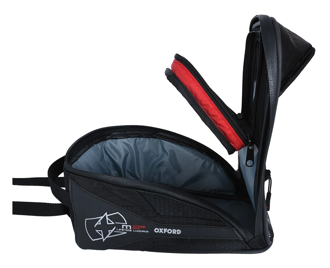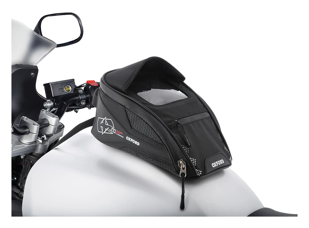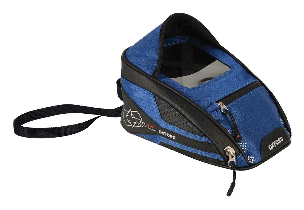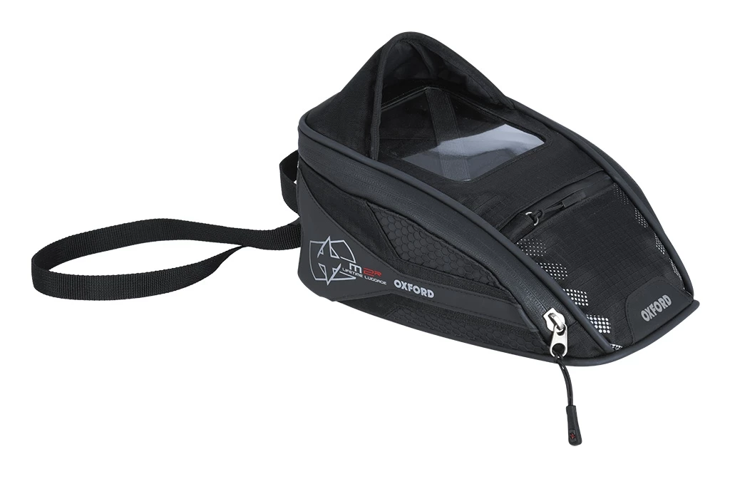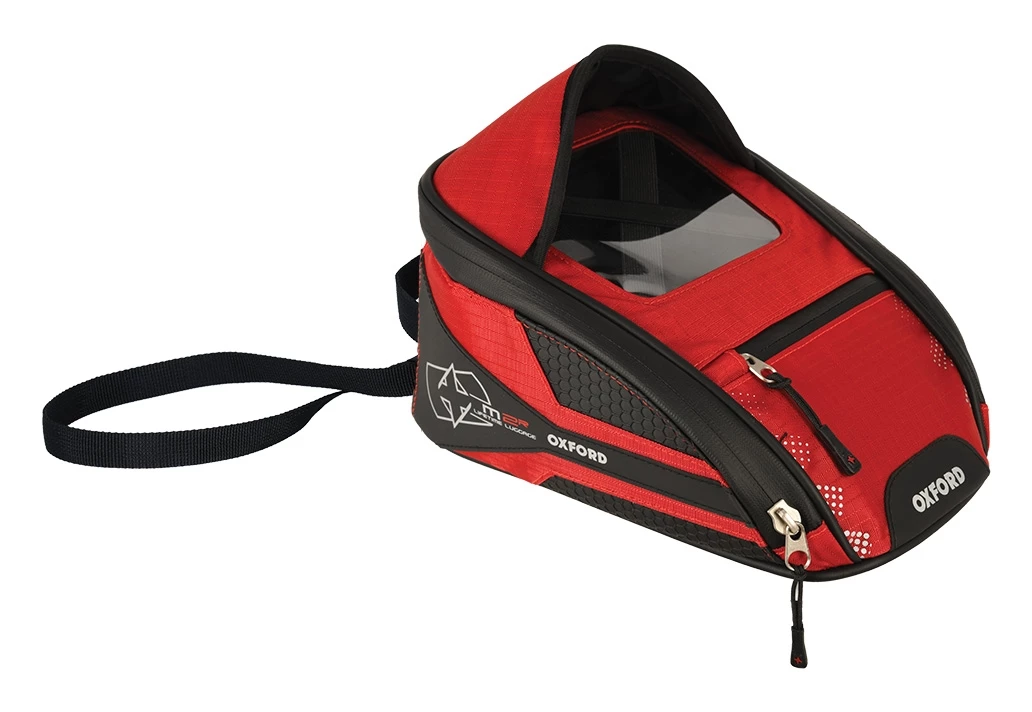The Oxford M2R Mini is an ultra-small magnetic tank bag designed to carry the essentials. It features a GPS window that fits devices measuring 5″ W x 4.3″ H.