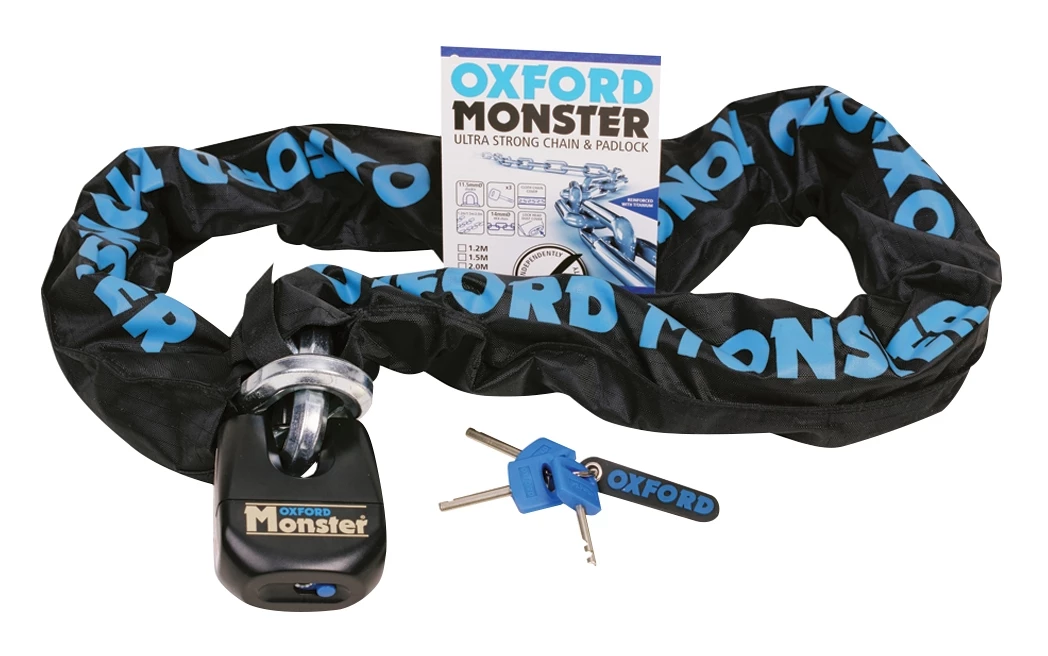 This one-two combo of an Oxford Monster padlock and a Monster 14mm Chain features chromoly steel links and a hardened boron steel shackle housing for some serious crime-thwarting action.
