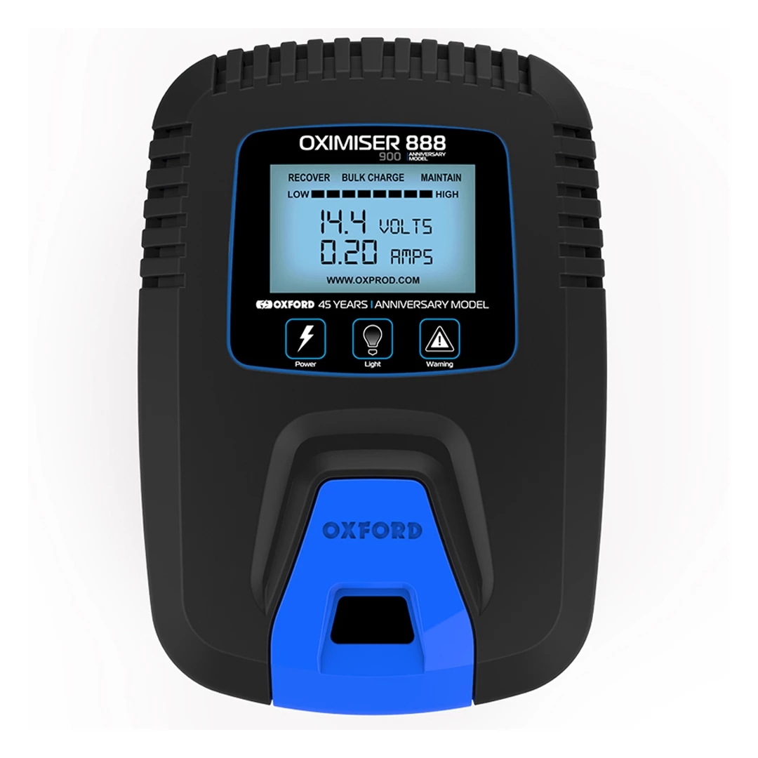 The Oximiser 900 is a professional switch mode charger designed to automatically maintain, optimize and prolong the life of any 12 volt battery. The sophisticated battery management system uses micro-processor control to select the optimum charging profile. It also performs sequenced checks and displays the battery status on a back-lit LCD screen.