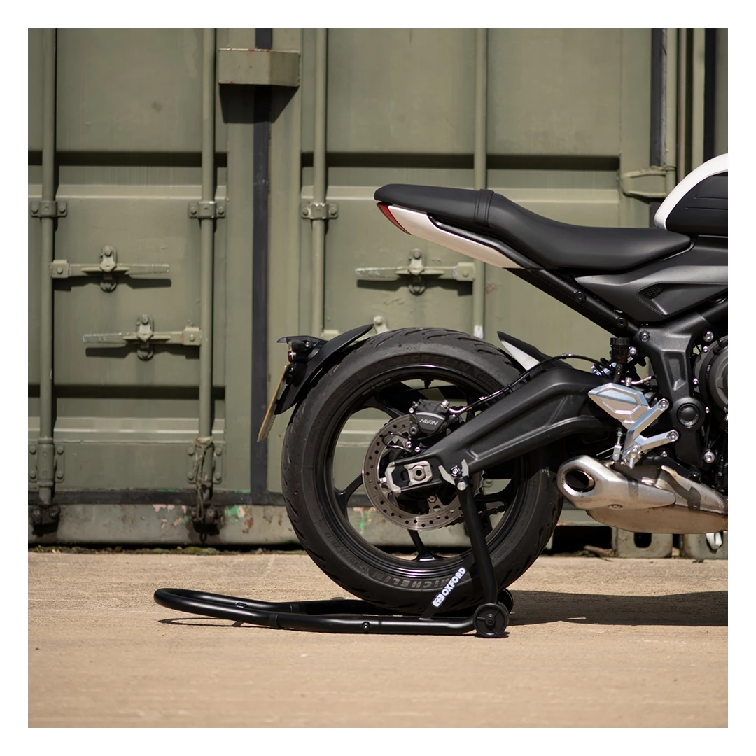 The Oxford Rear Paddock Stand is the perfect tool to lift the rear of your bike by the spools.